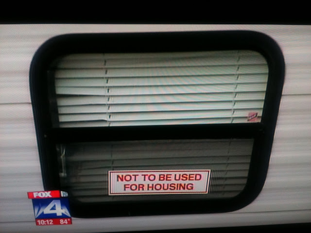 Non-Housing Only to be Used for Housing in an Emergency posted on July 3, 2010 Filed Under: Be More Careful FEMA is auctioning these trailers that were used as housing after Hurricane Katrina. The stickers really don't prevent that use, do they? The auctioner said they are only “for recreational uses” not housing.